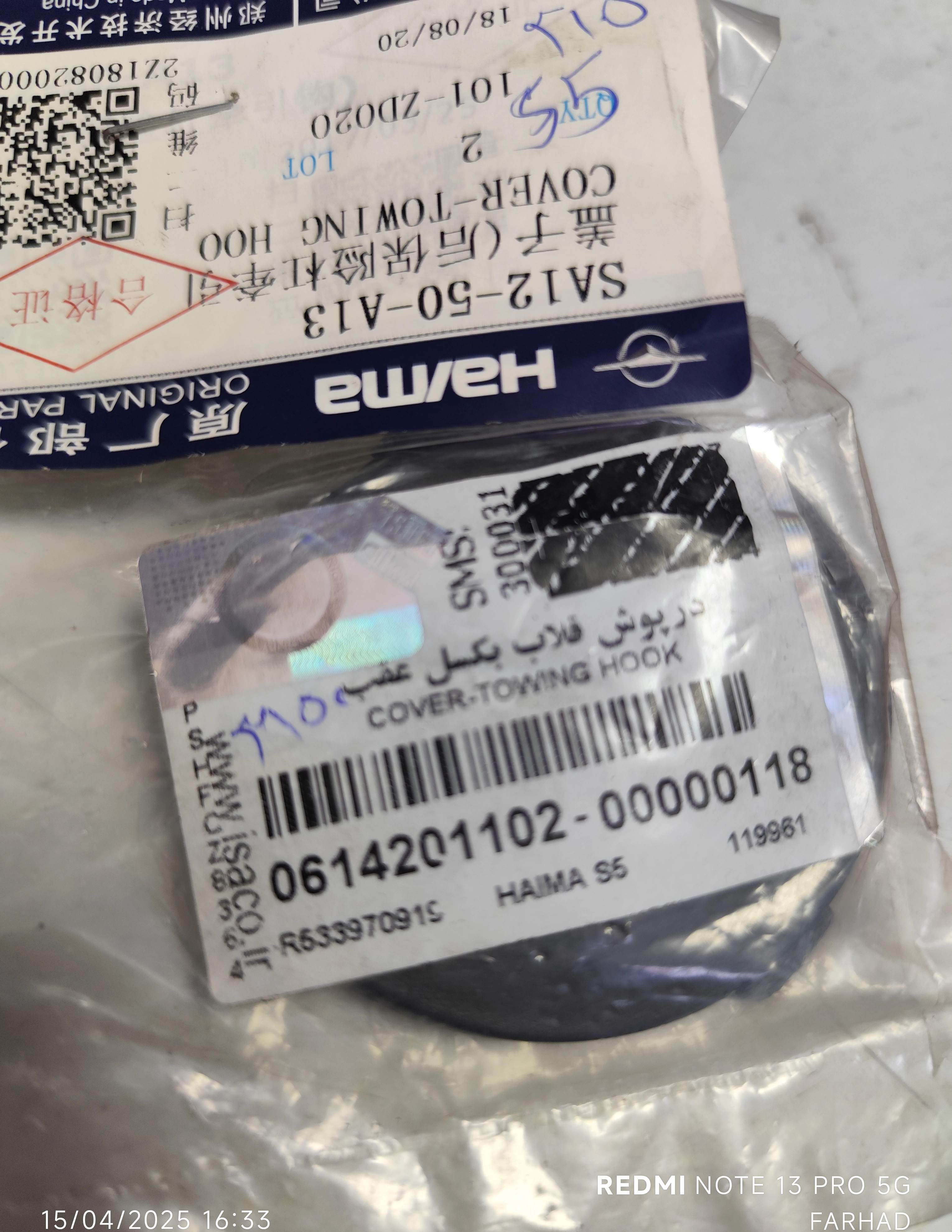درپوش قلاب بکسل عقب هایما اس 5 شرکتی