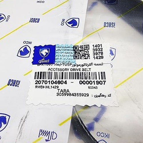 تسمه آلترناتور موتور TU5Pسایز 6PK1065مناسب برای تارا (فرمان برقی) برند ایساکو تولید شرکت رایکالتون کد تدارکاتی : 2070104604
